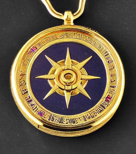 A 1.5" diameter, golden medallion, with an 8-pointed star embedded in a purple gem in its center, and with raised runes along its inner edge.