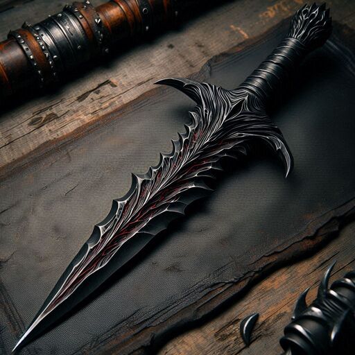 An ornate dagger with tiny, blood red veins of energy running through its intricate metalwork.