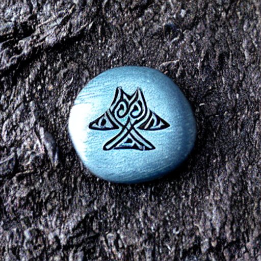 A small polished stone, about 2-inches in diameter, typically with a rune or glyph on carved on it.