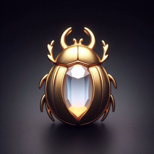 A small, golden medallion shaped like a beetle and inlaid with a single round, glowing, white gem in the center.